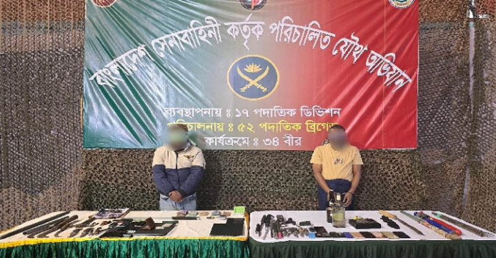 সিলেটে সেনাবাহিনীর অভিযানে বিএনপি ও স্বেচ্ছাসেবক দলের ২ নেতার বাসা থেকে দেশীয় অস্ত্র উদ্ধার