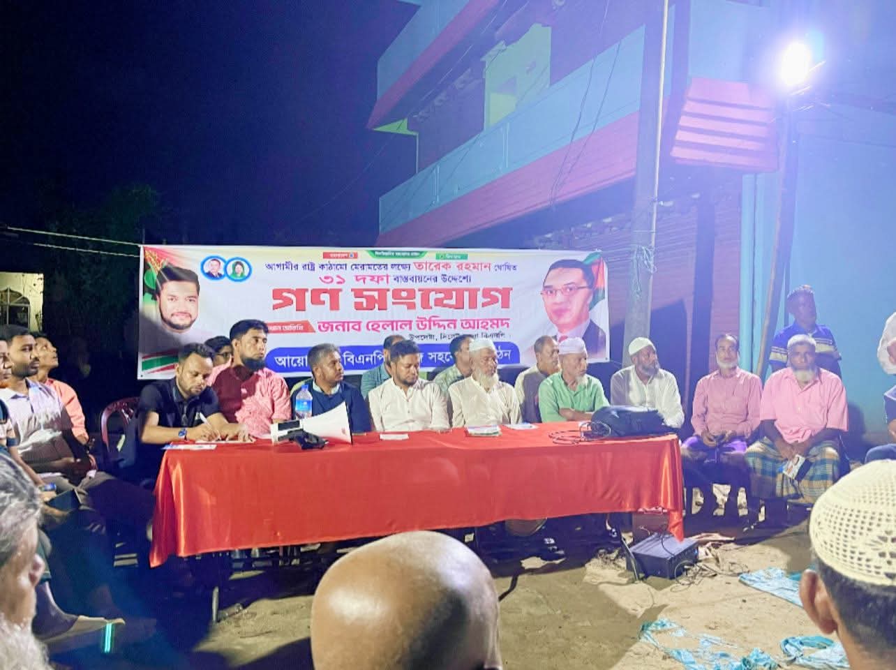শনিবার দিনব্যাপী তিনি কোম্পানীগঞ্জ উপজেলার ৩নং তেলিখাল ইউনিয়নের দলইরগাও বাজারে বিএনপির ভারপ্রাপ্ত চেয়ারম্যান জনাব তারেক রহমানের ৩১দফা বাস্তবায়নের লক্ষ্যে লিফলেট বিতরণ ও গন সংযোগ করেন।