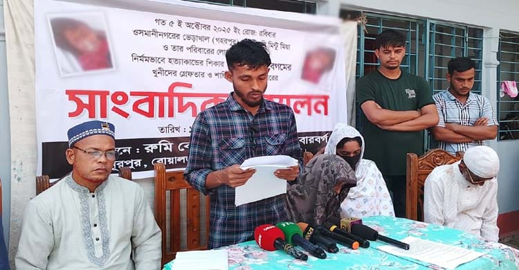 সোমবার (১৩ অক্টোবর ২০২৫) দুপুরে রায়হান মিয়ার নিজ বাড়িতে এ সংবাদ সম্মেলন অনুষ্ঠিত হয়।