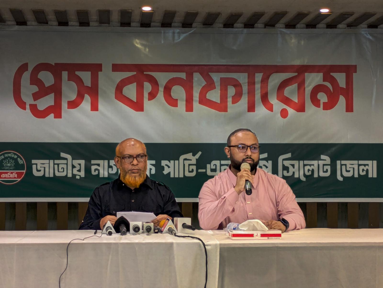 জাতীয় নাগরিক পার্টি (এনসিপি) সিলেট জেলা শাখার নবগঠিত আহ্বায়ক কমিটির আনুষ্ঠানিক সংবাদ সম্মেলন অনুষ্ঠিত হয়েছে। শনিবার (১৫ নভেম্বর) সকাল সাড়ে