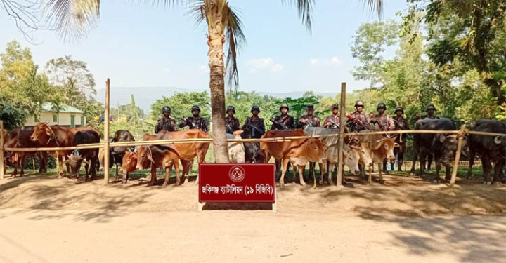 সিলেটের জৈন্তাপুর ও কানাইঘাট সীমান্ত এলাকায় পৃথক দুটি অভিযানে ভারতীয় গরু, মহিষ ও চোরাই পণ্য জব্দ করেছে বর্ডার গার্ড বাংলাদেশ