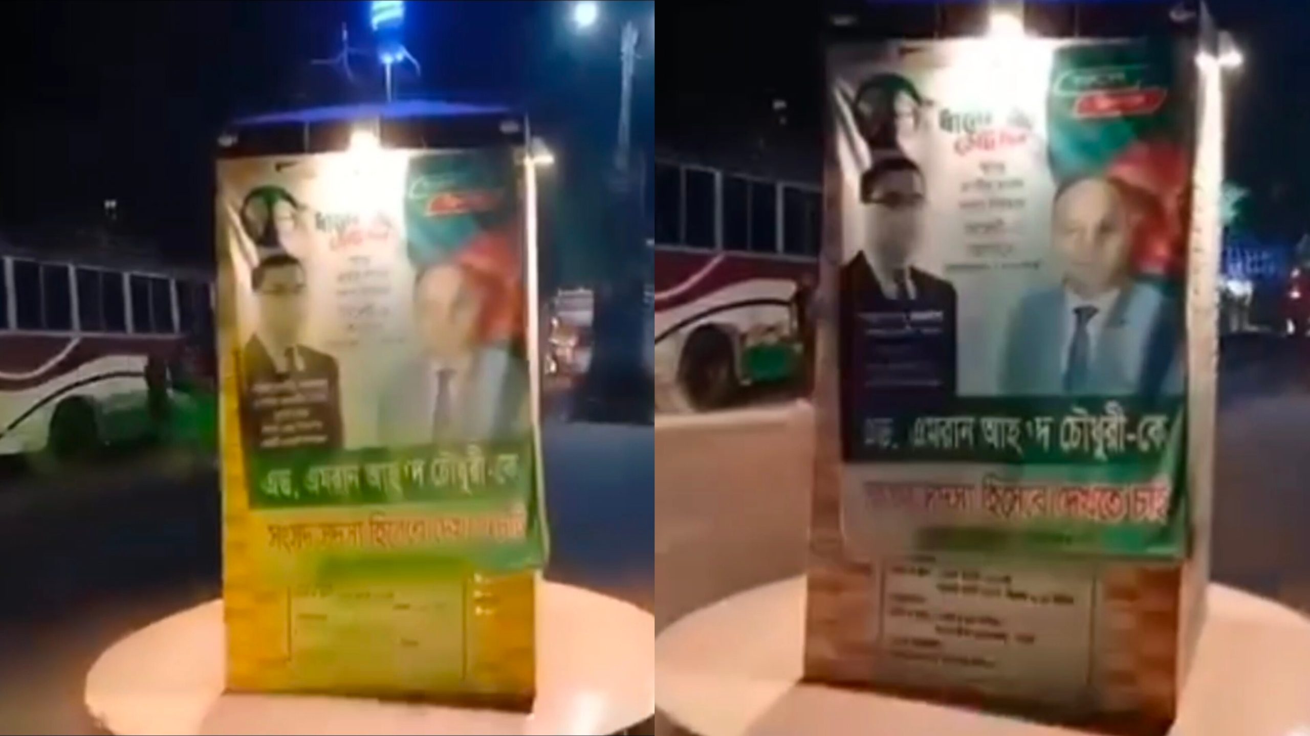 বিয়ানীবাজারে শহীদ তুরাব চত্বর দখল করে বিএনপি প্রার্থীর ফেস্টুন লাগানো নিয়ে সমালোচনা