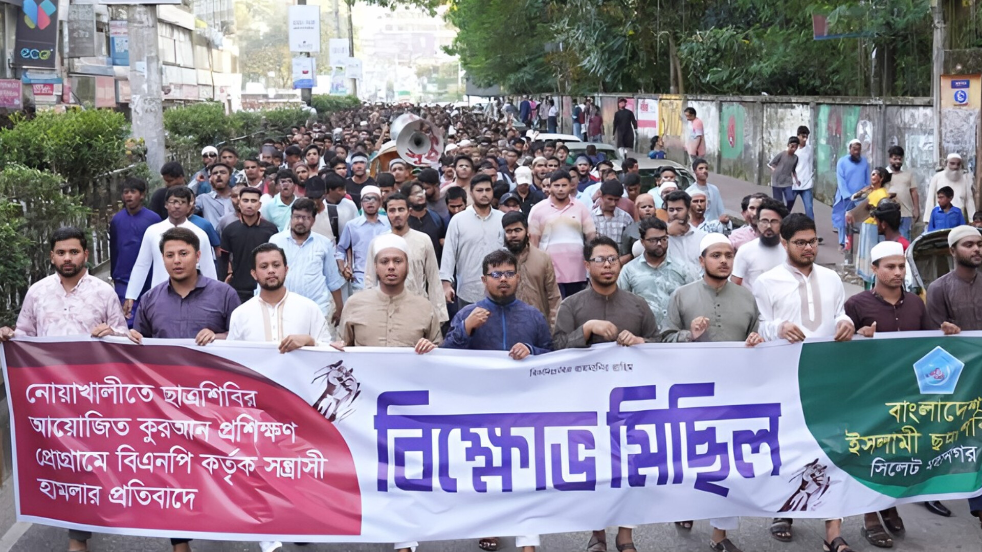নোয়াখালীতে ছাত্রশিবির আয়োজিত কুরআন প্রশিক্ষণ অনুষ্ঠানে বিএনপি কর্তৃক সন্ত্রাসী হামলার প্রতিবাদে বিক্ষোভ মিছিল ও সমাবেশ করেছে বাংলাদেশ ইসলামী ছাত্রশিবির সিলেট