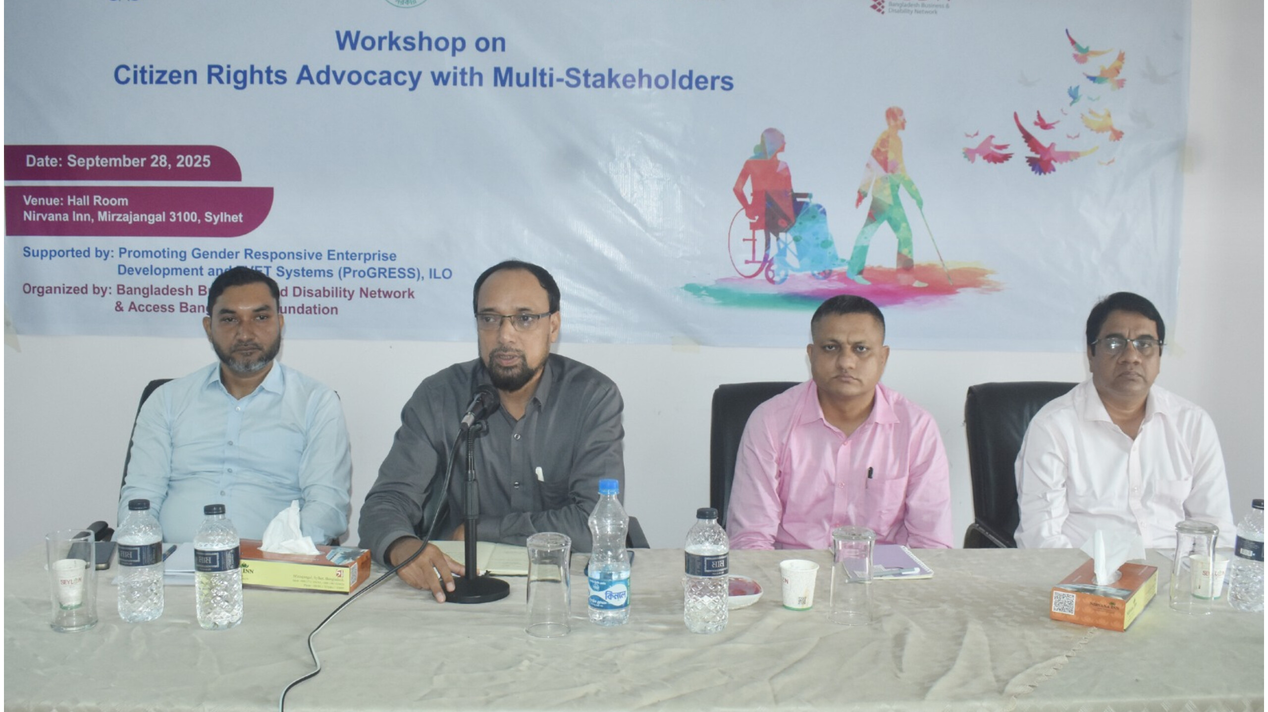 বাংলাদেশ বিজনেস এন্ড ডিজএবিলিটি নেটওয়ার্ক (বিবিডিএন) এর উদ্যোগে সিলেটে প্রতিবন্ধী ব্যক্তিদের নিয়ে নাগরিক অধিকার সংক্রান্ত বিষয়ক বহুপক্ষীয় কর্মশালা অনুষ্ঠিত হয়েছে।