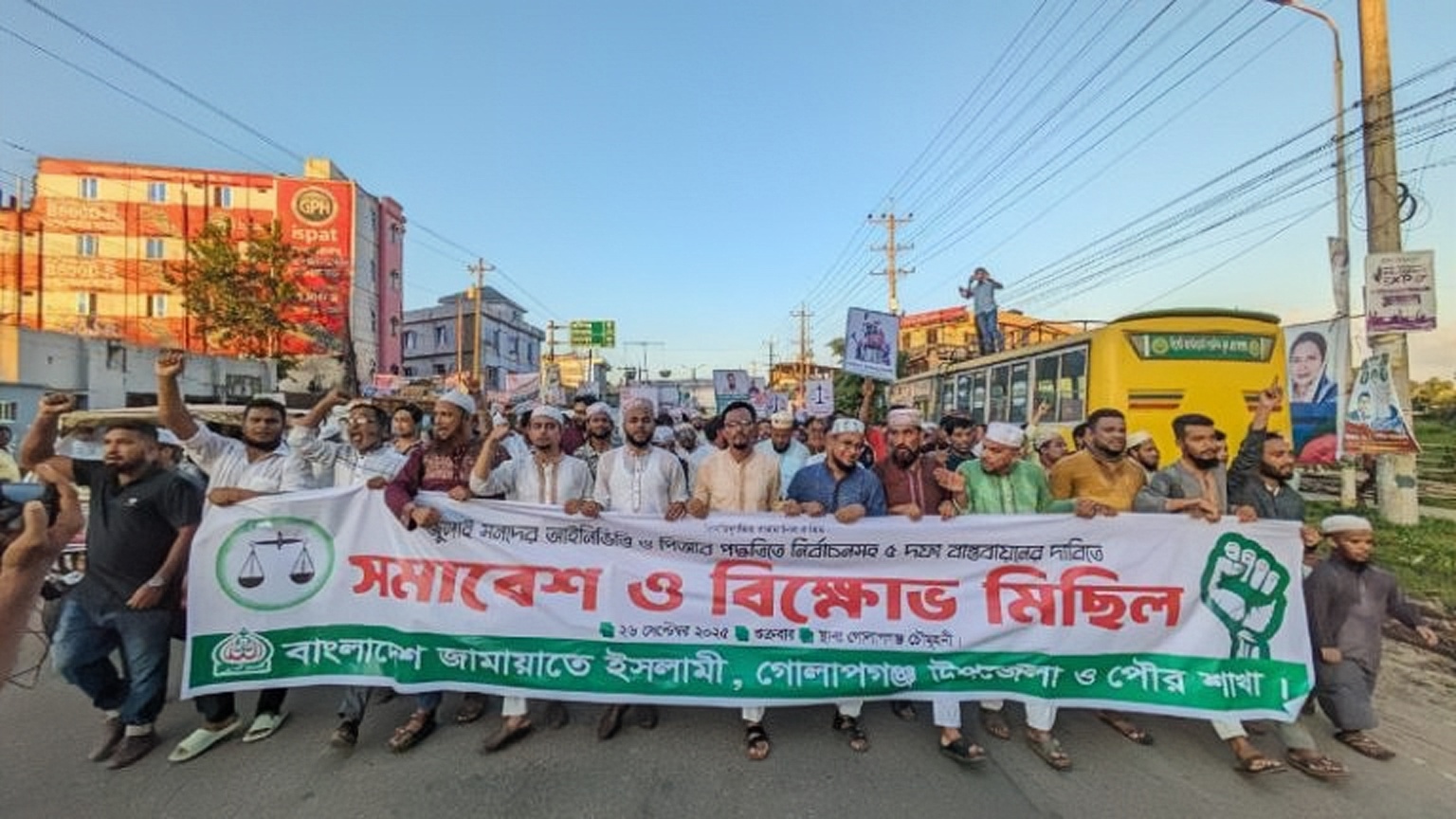 পিআর পদ্ধতিতে নির্বাচন, প্রয়োজনীয় রাষ্ট্র সংস্কার, গণহত্যার দৃশ্যমান বিচার ও জুলাই সনদের ভিত্তিতে নির্বাচনসহ পাঁচ দফা দাবীতে বিক্ষোভ মিছিল ও