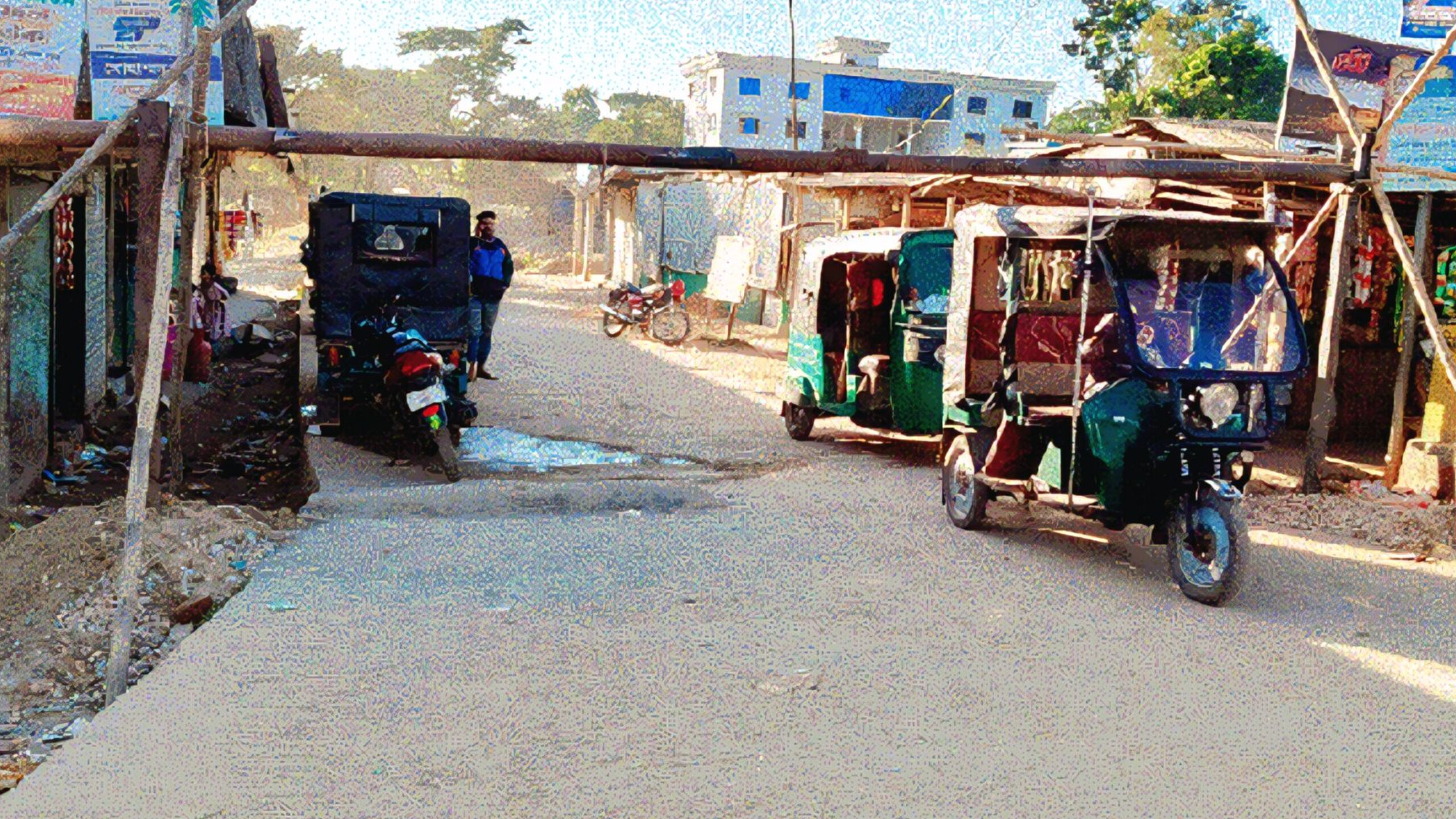 সিলেটে পাথর লুট ঠেকাতে সড়কে লোহার বেষ্টনী