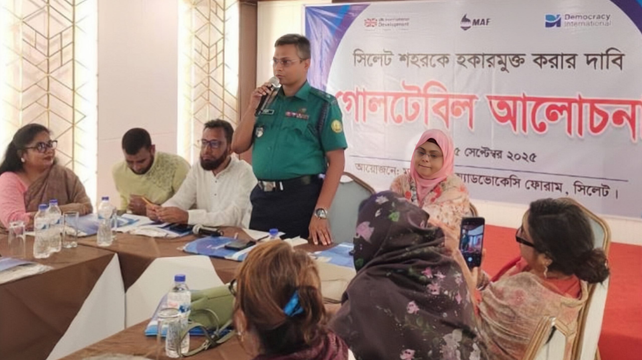 মাল্টি-পার্টি অ্যাডভোকেসি ফোরাম (MAF)- সিলেট এর উদ্যোগে ‘হকারমুক্ত সড়ক’ শীর্ষক গোলটেবিল বৈঠক অনুষ্ঠিত হয়েছে। বৃহস্পতিবার (২৫ সেপ্টেম্বর) সকালে নগরের অভিজাত