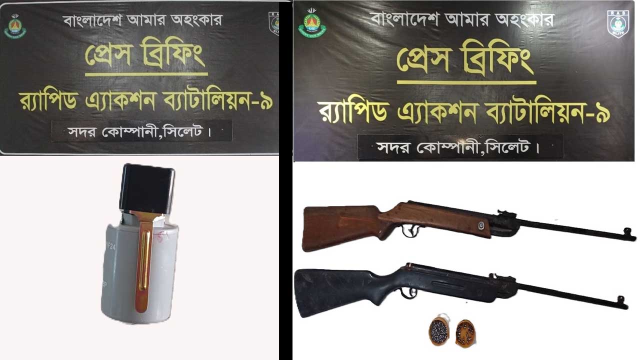 সিলেটে র্যাবের অভিযানে অস্ত্রসহ বিস্ফোরক উদ্ধার