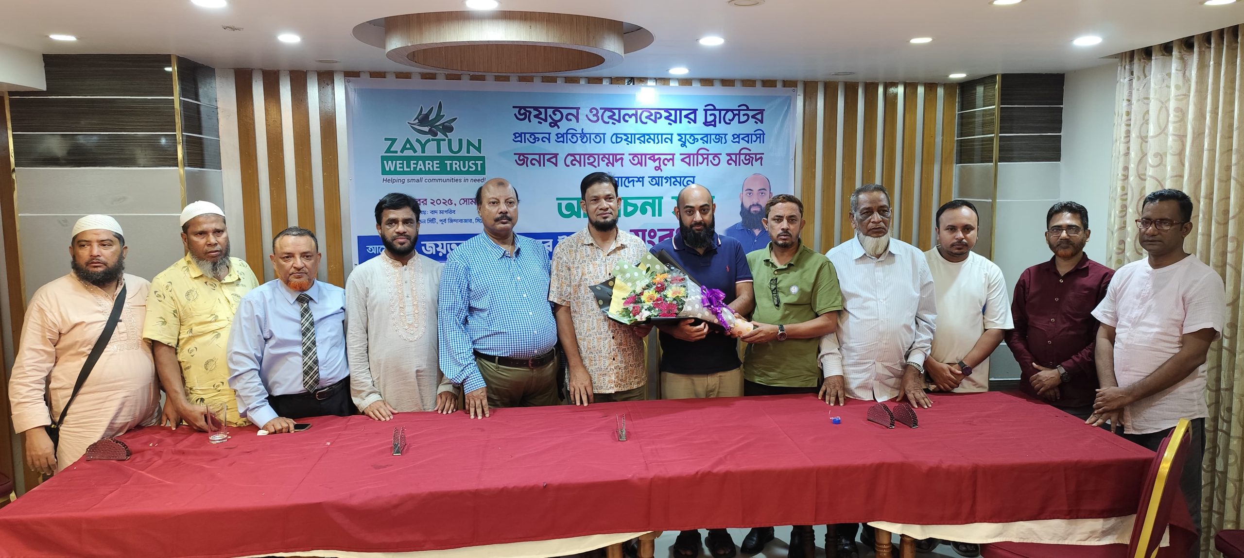 সোমবার সন্ধ্যায় সিলেট নগরীর জিন্দাবাজারস্থ একটি অভিজাত হোটেলে কনফারেন্স রুমে জয়তুন ওয়েলফেয়ার ট্রাস্টের উদ্যোগে আয়োজিত মতবিনিময় ও সংবর্ধনা অনুষ্ঠানে মোহাম্মদ আব্দুল বাসিত মজিদকে সংবর্ধিত করা হয়।